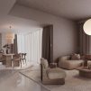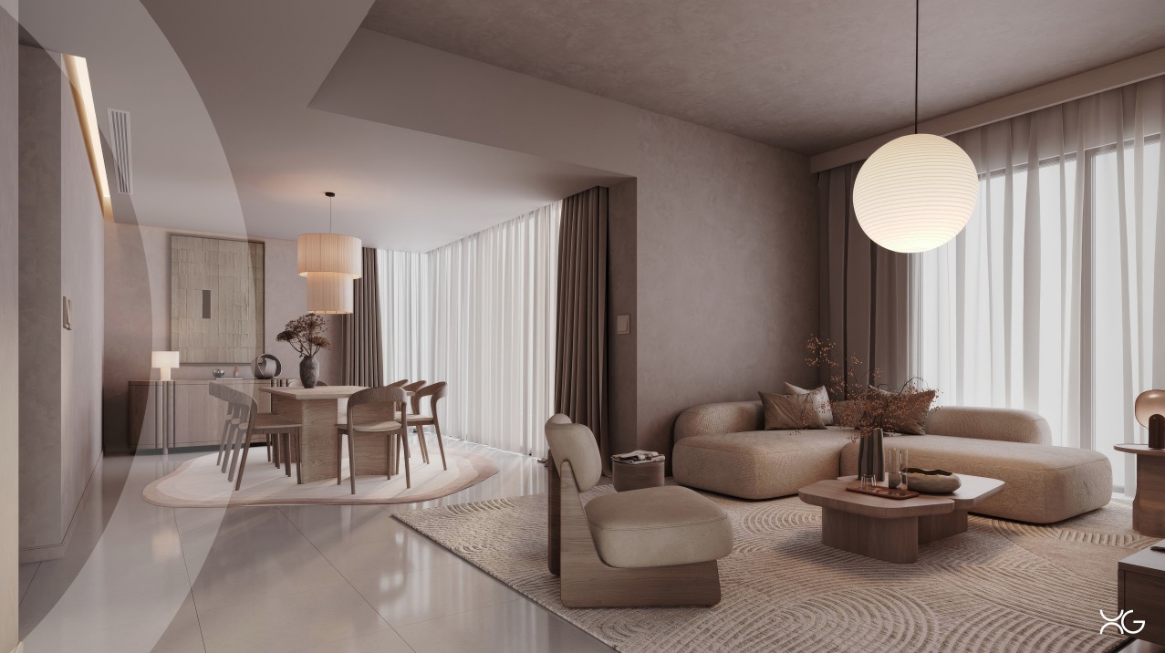 تصميم عصري لغرفة المعيشة والطعام بمخطط مفتوح